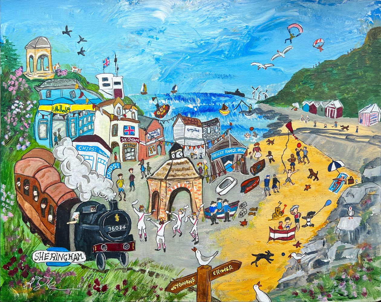 Amanda blends perspective, gentle humour, and a carefully balanced palette to create contemporary art scenes that feel both familiar and uplifting. Her work is inspired by coastal towns, historic buildings, and the quiet rhythms of British life, showcasing a particular affection for the Norfolk landscape and seaside. The quirky art she produces often reflects the charm of North Norfolk, making it a perfect Norfolk gift for those who appreciate the beauty of this region.